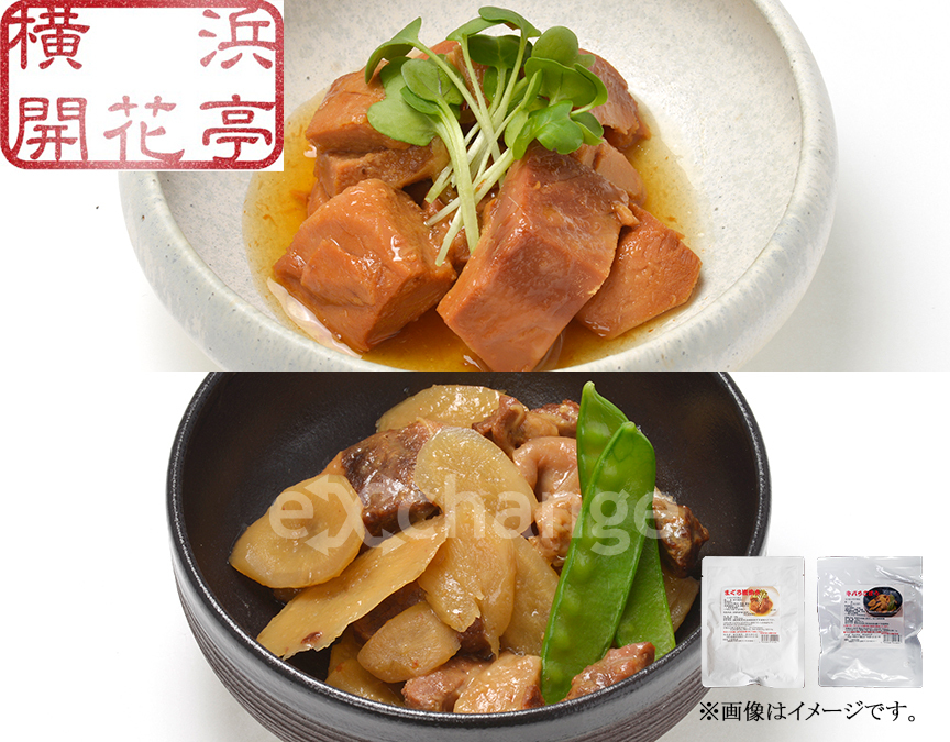 国産キハダ鮪を食べやすい大きさにカットし、生姜をきかせて柔らかく煮込んだまぐろ浅炊き と 豪州産牛バラ肉と国産ごぼうを一緒に味噌仕立てで、柔らかくホロホロに煮込んだ牛バラごぼう のセットです。