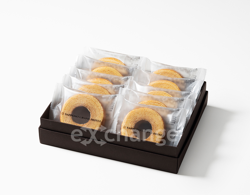 北海道産米粉を使用したしっとりと贅沢な味わいで小麦、バター、卵も北海道産を使用し、しっとりと味わい深いふんわりとした食感のバームクーヘンです。