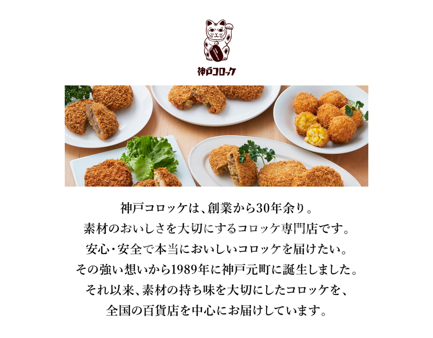野菜の甘みを活かしたシンプルなじゃがいものコロッケです。じゃがいもの風味を楽しんでいただけるように、野菜の甘みを引き出したブイヨンやソテーした玉ねぎを合わせています。甘味がありお子様からご年配の方まで幅広い方が食べやすい味わいです。