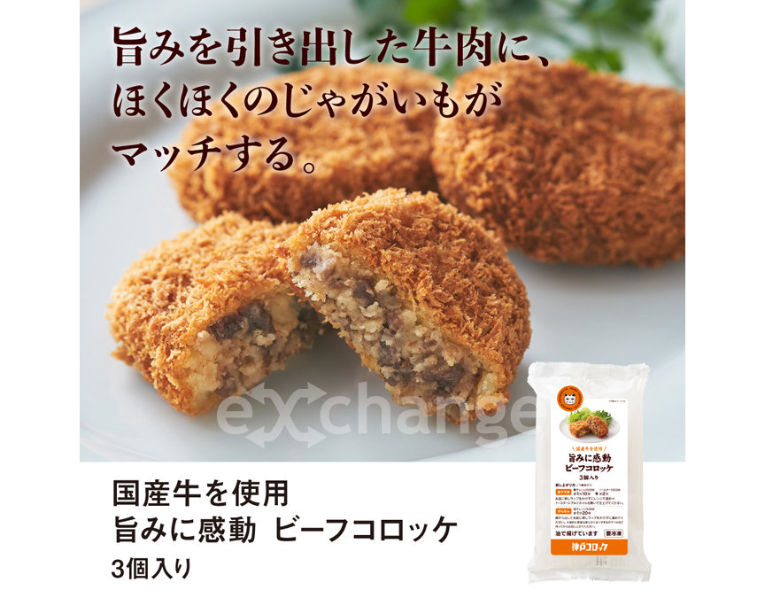 牛肉を炒めて旨みを引き出し、ほくほくのじゃがいもを合わせました。牛肉の旨味を味わえる甘辛い味付けのコロッケです。