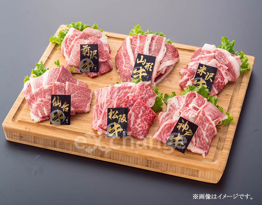 | セット内容 | 松阪牛・神戸牛・山形牛・仙台牛・米沢牛・前沢牛 焼肉(カタ・バラ)各200g |
