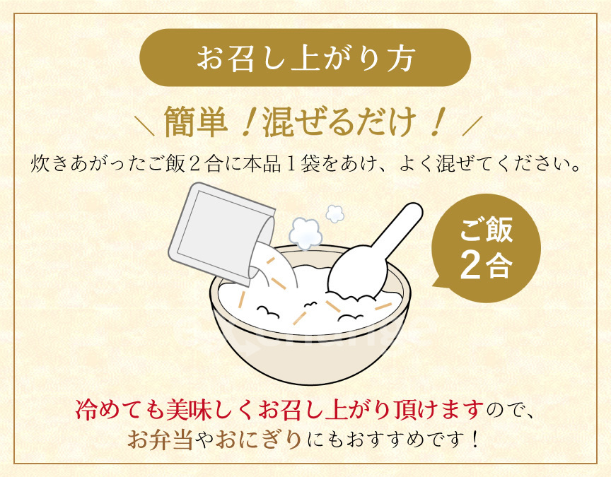 昆布屋が作る混ぜご飯の素です。自社工場で丁寧に引いた昆布とかつお節の出汁をベースに作った調味液を使用しています。出汁感をしっかり味わう事ができるので、温かいのはもちろん、冷めても美味しくお召し上がりいただけます。鹿児島県産の鰹の甘味が長崎県産のひじきと絶妙に合います。炊きたてご飯に混ぜるだけで簡単に作れます。