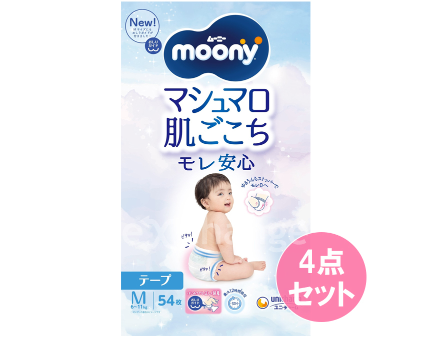 | セット内容 | ムーニー マシュマロ肌ごこちモレ安心 Mサイズ54枚×4個 |