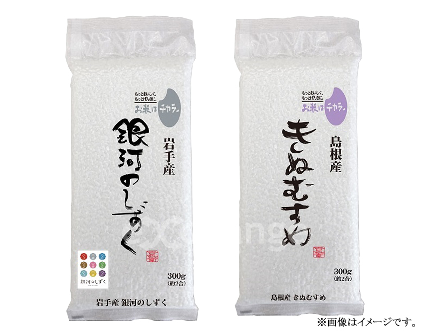 セット内容 | 岩手県産銀河のしずく、島根県産きぬむすめ 真空パック300g各1袋 |