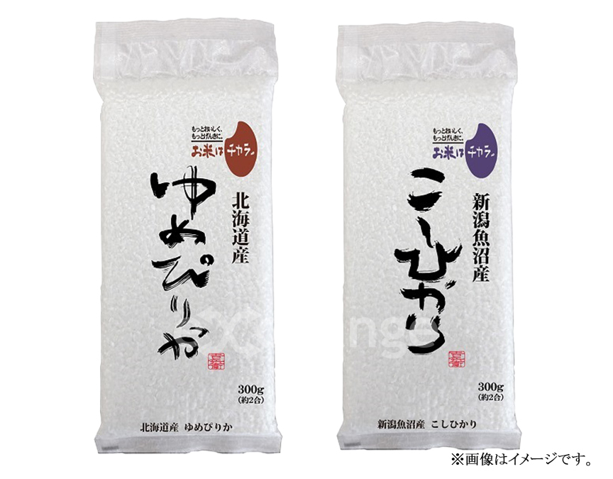 セット内容 | 北海道産ゆめぴりか、新潟魚沼産こしひかり 真空パック300g各1袋 |