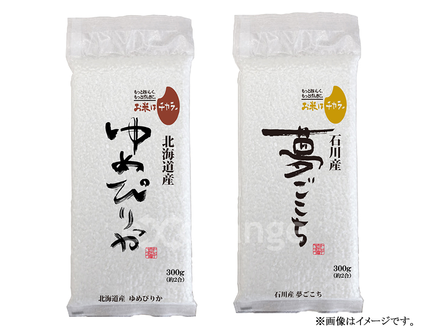 セット内容 | 北海道産ゆめぴりか、石川県産夢ごこち 真空パック300g各1袋 |