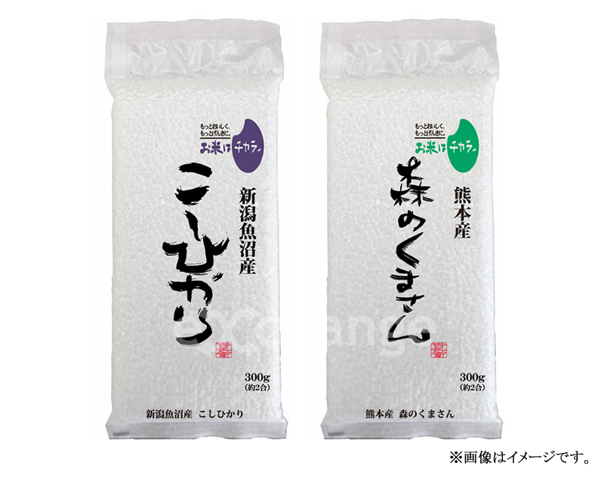 セット内容 | 新潟魚沼産コシヒカリ、熊本県産森のくまさん 真空パック300g各1袋 |