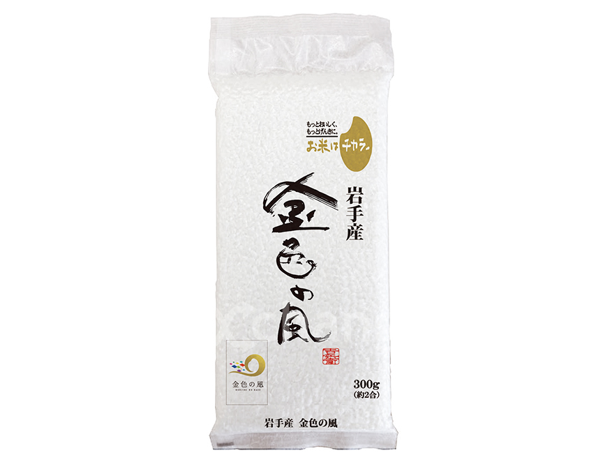 岩手県が「全国最高水準の食味」をキャッチフレーズに、粒レベルで特徴を解明し、開発をすすめ、2017年にデビューした新品種が「金色の風」です。新潟コシヒカリ並みのアミロース含有量と、ひとめぼれのトータルバランスを兼ね備えた今までにないお米として開発がすすめられ誕生しました。ふんわりと柔らかな食感と豊かな甘み、粒ぞろいの良さを持ち、最後までさっぱりと食べられるお米です。独自の真空包装で、お米の酸化による劣化が進まない包装により精米日から1年間おいしく召し上がれます。300g(約2合)に計量済のため、炊飯の際の手間が省けて使い勝手も非常に便利な商品となります。