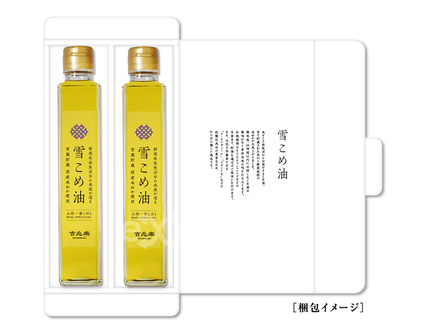 セット内容 | 圧搾一番しぼり雪こめ油180g×2本 |