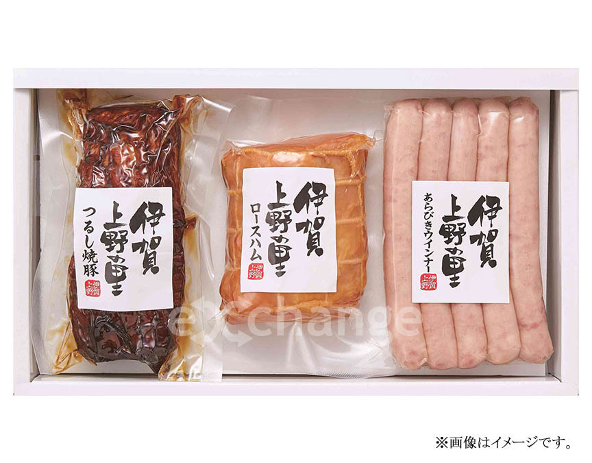 セット内容 | ロースハム250g、つるし焼豚170g、あらびきウィンナー150g 各1 |
