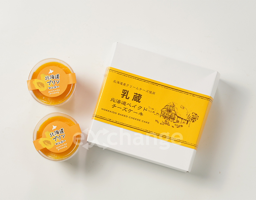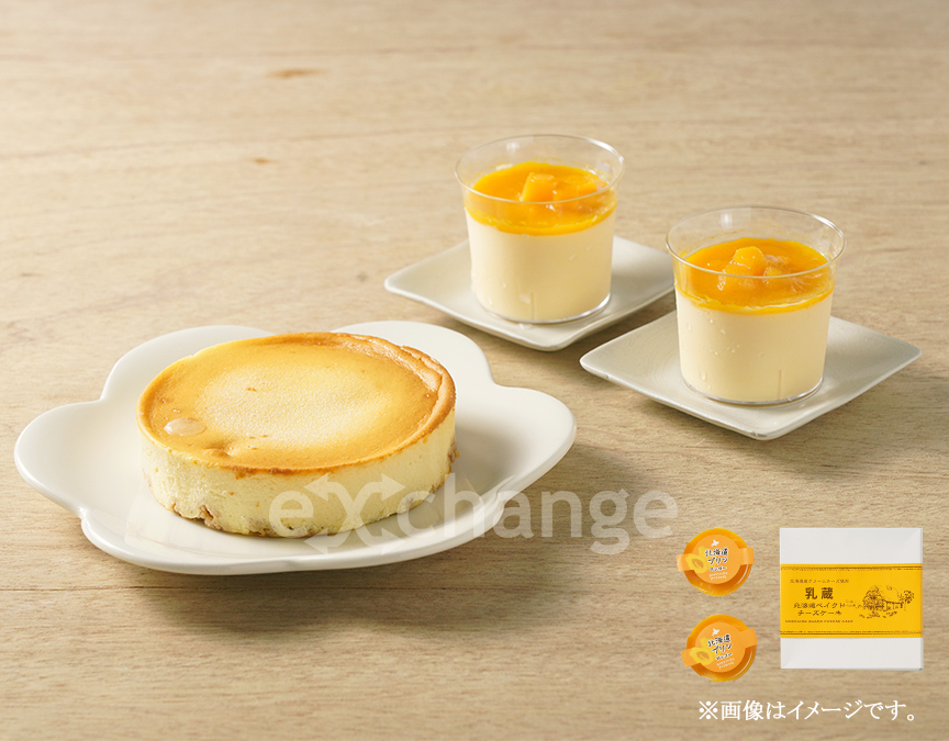 濃厚なチーズの味わいが楽しめるベイクドチーズケーキと北海道産の牛乳を使用したプリンに濃厚なマンゴーソースをトッピングしたマンゴープリンのセット。