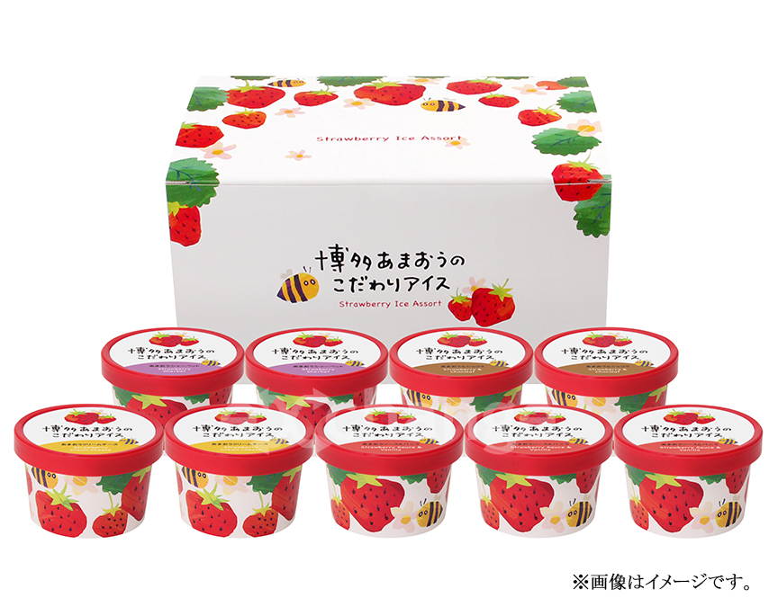 福岡の農家さんが愛情たっぷりに育てた「博多あまおう」をとことん楽しむアイスです。苺と相性のよい素材を選び、全く異なる4つの味わいに仕上げました。あまおうの魅力がぎゅっと詰まった、大人から子どもまで幅広く愛されるアイスです。