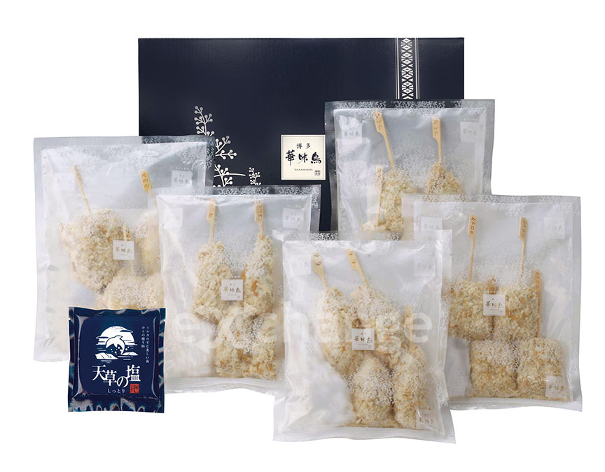 セット内容 | 華味鳥 もも串 30g×4、華味鳥 つくね串 30g×4、華味鳥 梅しそ巻串 30g×4、華味鳥 鳥ごぼうコロッケ串 30g×4、華味鳥 ささみクリームチーズ串 50g×4、天草の塩 50g×1 |