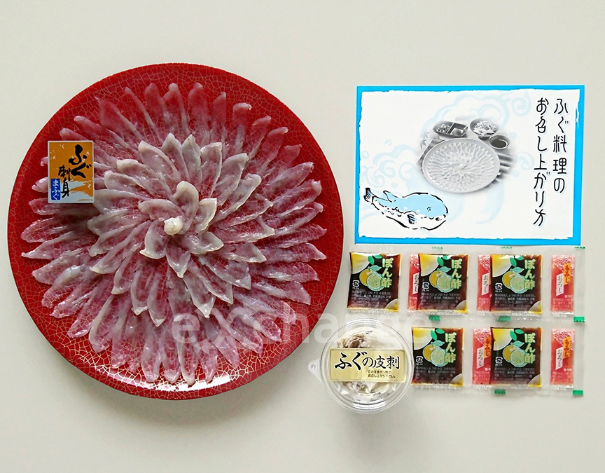 セット内容 | まふぐ刺身100g、とらふぐ皮刺50g、もみじおろし付ぽん酢16.5g×5 |