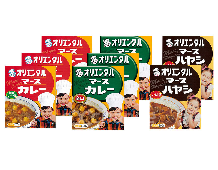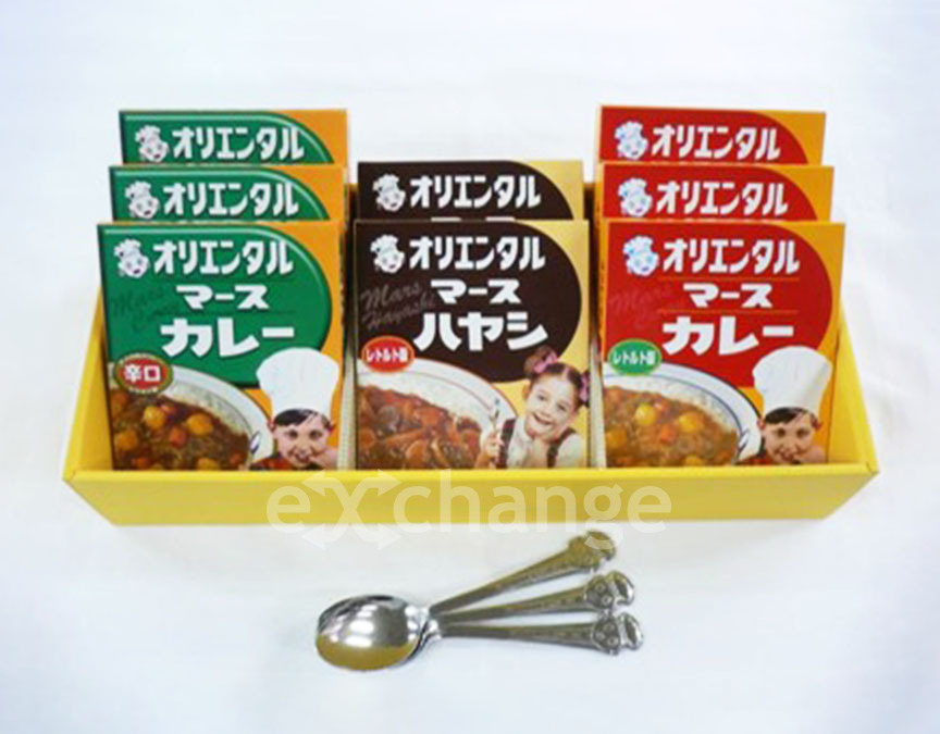 セット内容 | マースカレーレトルト版×3個、マースカレーレトルト版辛口×3個、マースハヤシレトルト版×2個、オリジナルスプーン×3本 |