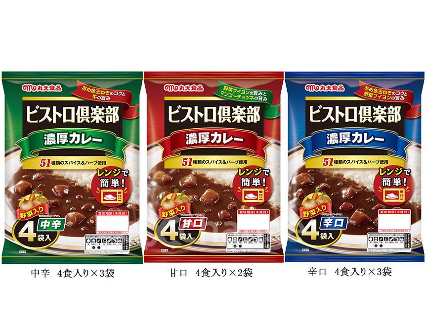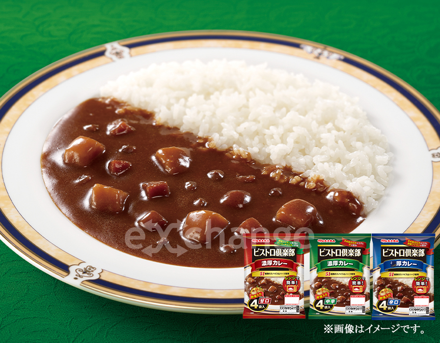 セット内容 | ビストロ倶楽部濃厚カレー中辛170g×4食×3袋、ビストロ倶楽部濃厚カレー辛口170g×4食×3袋、ビストロ倶楽部濃厚カレー甘口170g×4食×2袋 |