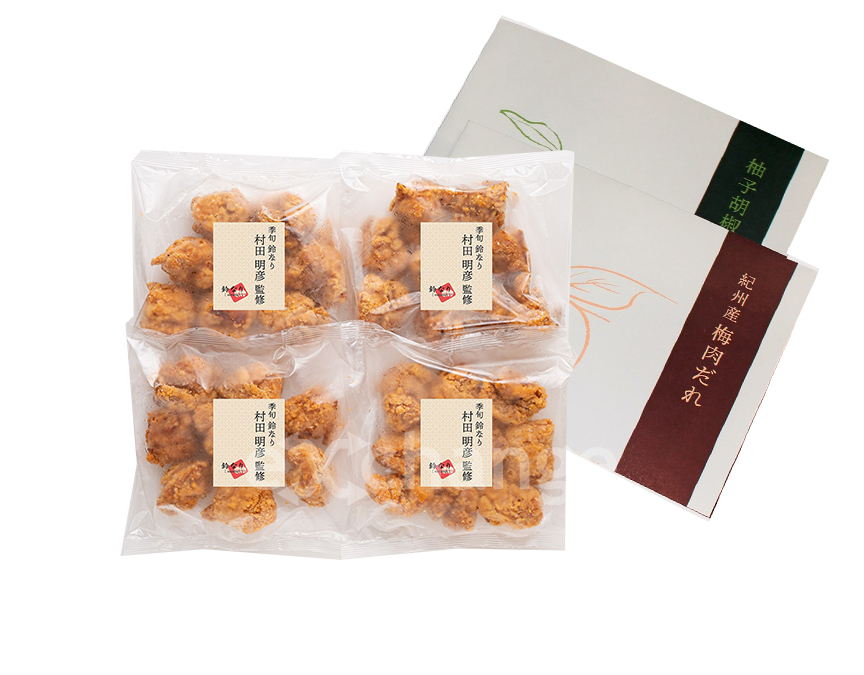 セット内容 | 鶏からあげもも肉(調理済み)300g×4、柚子胡椒ソース40g×2、梅肉だれ40g×2 |