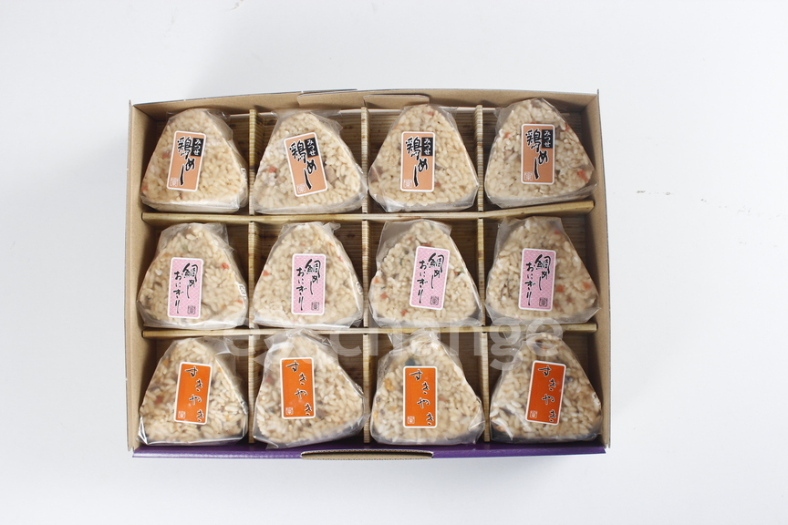 セット内容 | みつせ鷄おにぎり90g×4個、鯛めしおにぎり90g×4個、すき焼きおにぎり90g×4個 |