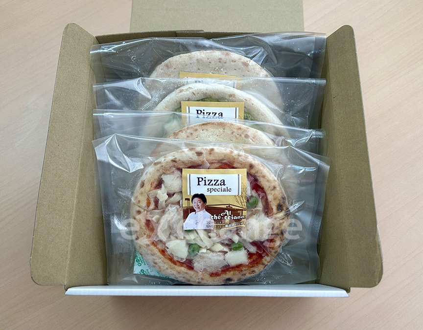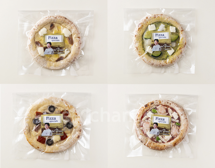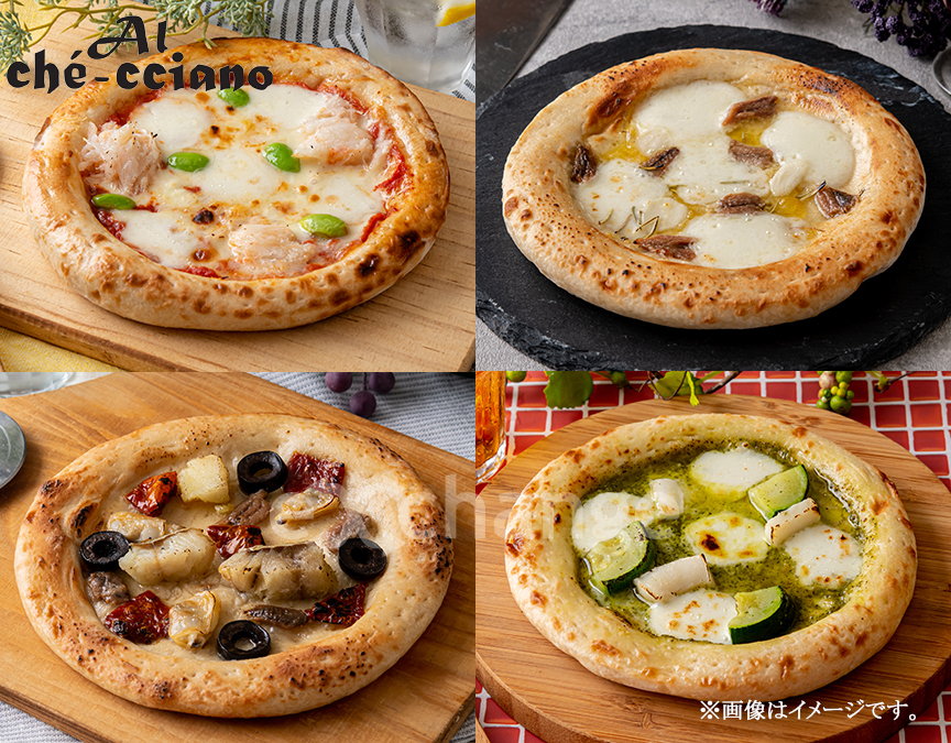 セット内容 | マルズワイガニとだだ茶豆のピザ130g×1、白身魚と魚介たっぷりのマリナーラピザ95g×1、シチリア産アンチョビとガーリックのピザ86g×1、ローストイカとイタリア産グリルズッキーニのジェノベーゼピザ105g×1 |