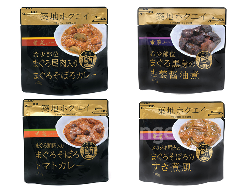 | セット内容 | まぐろ尾肉入りまぐろそぼろカレー140g×1、メカジキ尾肉とまぐろそぼろのすき煮風140g×1、まぐろ黒身の生姜醤油煮140g×1、まぐろ頭肉入りまぐろそぼろトマトカレー140g×1 |
