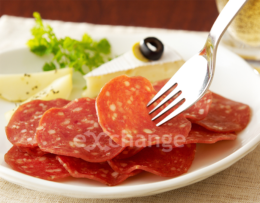 おつまみサラミ:豚肉と牛肉を使用し、乾燥して仕上げたサラミソーセージです。