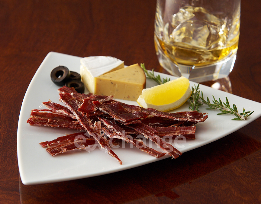 ビーフジャーキー:牛もも肉を特製のしょう油ダレに漬け込み仕上げたビーフジャーキーです。
