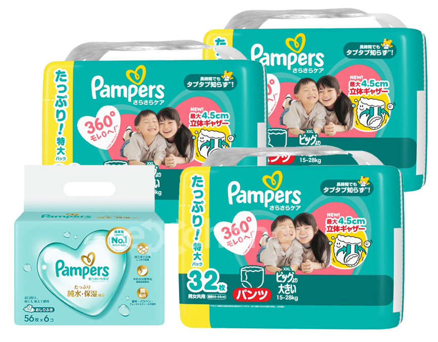 | セット内容 | パンパースさらさらケアパンツ/ウルトラジャンボ ビッグより大きい32枚×3個、パンパース 肌へのいちばん おしりふき(56枚×6P)×1個 |