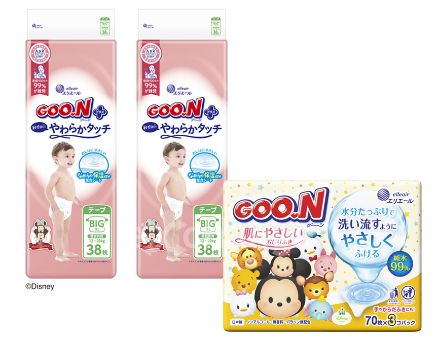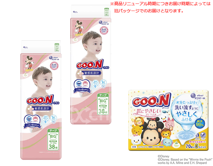 | セット内容 | グーンプラス敏感肌にやわらかタッチBビッグサイズ38枚×2個、グーン肌にやさしいおしりふき70枚3P×1個 |