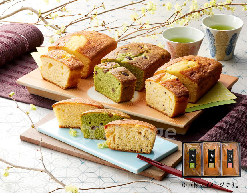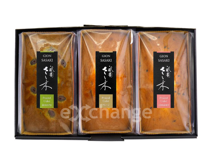 「祇園さゝ木」監修のパウンドケーキは、シンプルな美味しさが味わえるプレーンと、宇治抹茶を使用した生地に北海道産のあずきを混ぜ込んだ抹茶あずき、加賀野菜の五郎島金時を練り込んだ香り豊かな五郎島金時芋の3種類。どれもしっとり、ふんわりとした焼き上がりが自慢です。