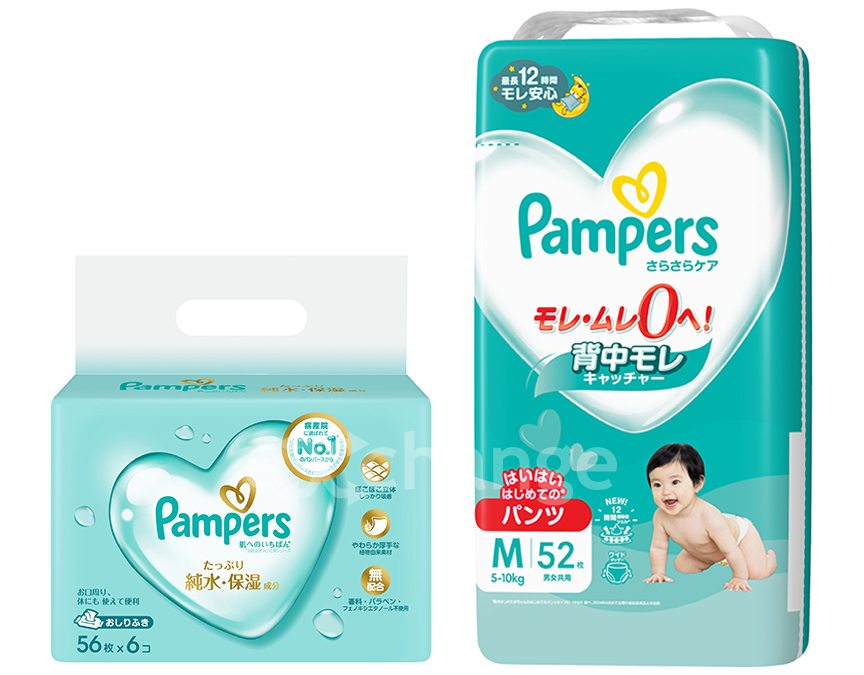 | セット内容 | パンパース さらさらケアパンツ Mサイズ(はいはい)52枚×1個、パンパース 肌へのいちばん おしりふき 56枚6P×1個 |