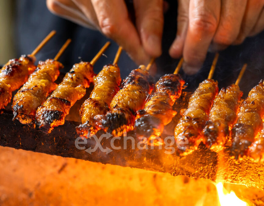 鶏皮を串にぐるぐると巻き、炭火で丁寧に焼いた逸品です。外側はパリッと香ばしく、中はジューシーで柔らかい食感が特徴で、甘辛なタレとの相性も抜群で何本でも食べたくなるクセになる味わいです。