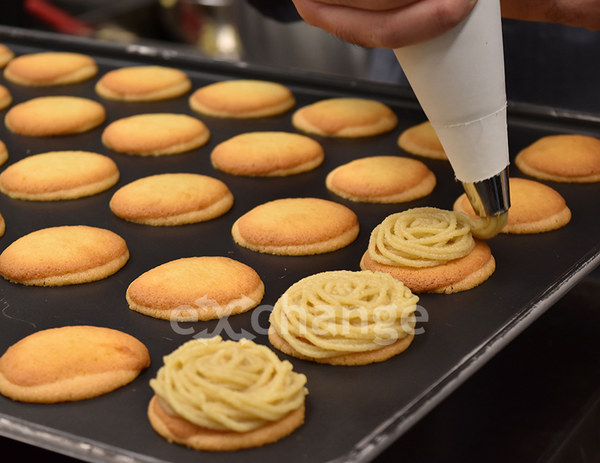 サブレ生地の上にさつま芋のモンブランクリームを手絞りして焼き上げました。