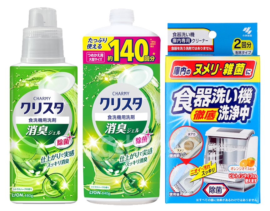 | 原産国:日本 メーカー名:ライオン(チャーミークリスタ)、小林製薬(食器洗い機洗浄中) |