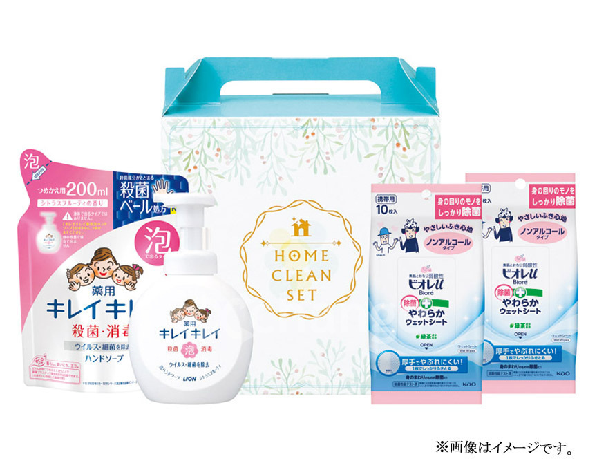 | セット内容 | ライオンキレイキレイ薬用泡ハンドソープ(250ml)、ライオンキレイキレイ薬用ハンドソープ詰め替え(200ml)×各1、花王ビオレu除菌やわらかウェットシートノンアルコール(10枚)×2 |