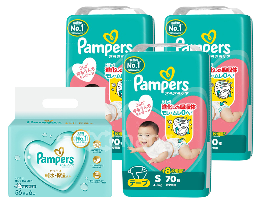 | セット内容 | パンパースさらさらケアテープ/スーパ-ジャンボ S70枚×3個、パンパース 肌へのいちばん おしりふき(56枚×6P)×1個 |