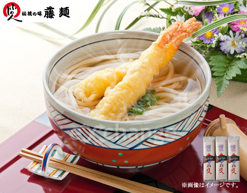 創業明治30年「伝統の味 藤麺」 ツルツルとしたのど越しのよい讃岐うどんです。