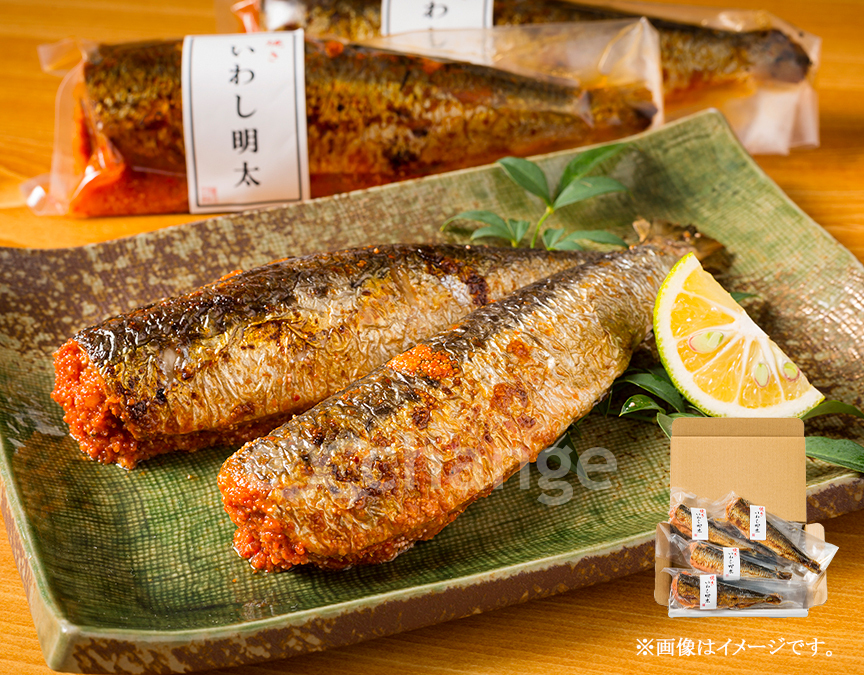 丸々太って脂ののった真いわしにピリッと辛さの効いた辛子明太子のバラコを詰め込んだ博多名物のいわし明太子を香ばしく焼き上げ、美味しさそのままパックしました。焼くのが難しいいわし明太子をレンジで温めるだけでお召し上がり頂ける簡単調理の便利な商品です。お酒の肴、1品足りない時に重宝します。