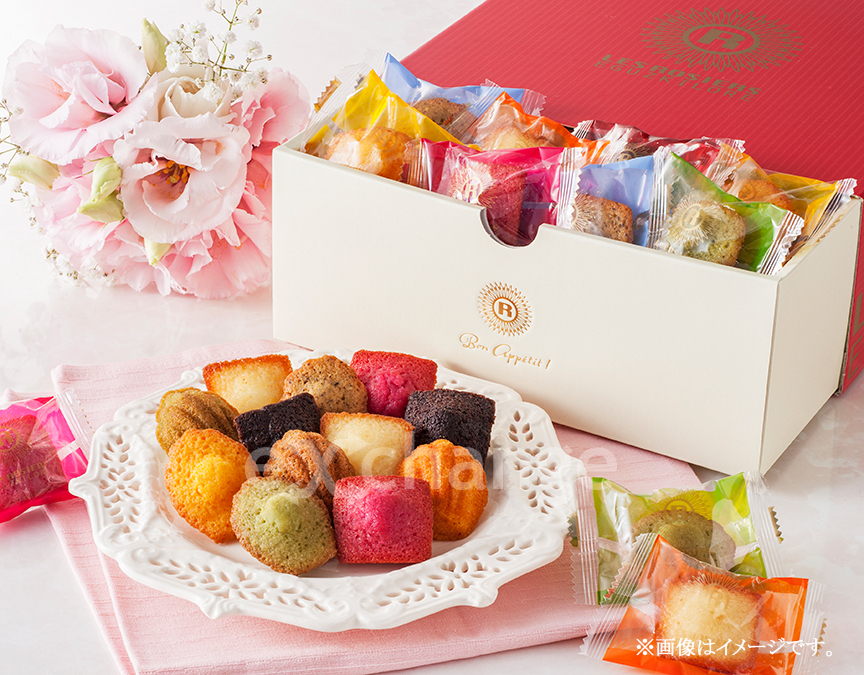 | セット内容 | フィナンシェ(プレーン・ショコラ・フランボワーズ)×各7、マドレーヌ(ピスタチオ・アールグレイ・マンゴー)×各7(計42) |