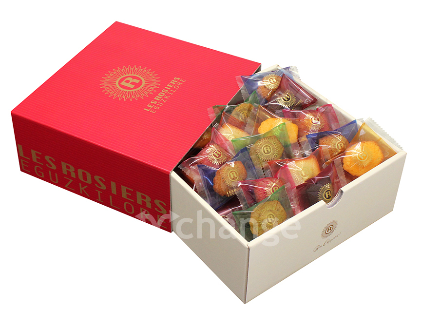 引き出しを開けると、ひと口サイズのカラフルな焼き菓子がたくさん!6種類のバラエティ豊かなフィナンシェやマドレーヌの詰合せです。華やかなギフトボックスに仕上げました。