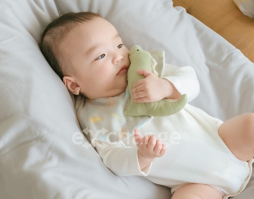 ラトルは肌当たりがいい綿100%素材で、握りやすく、優しい音色の鈴が入っています。