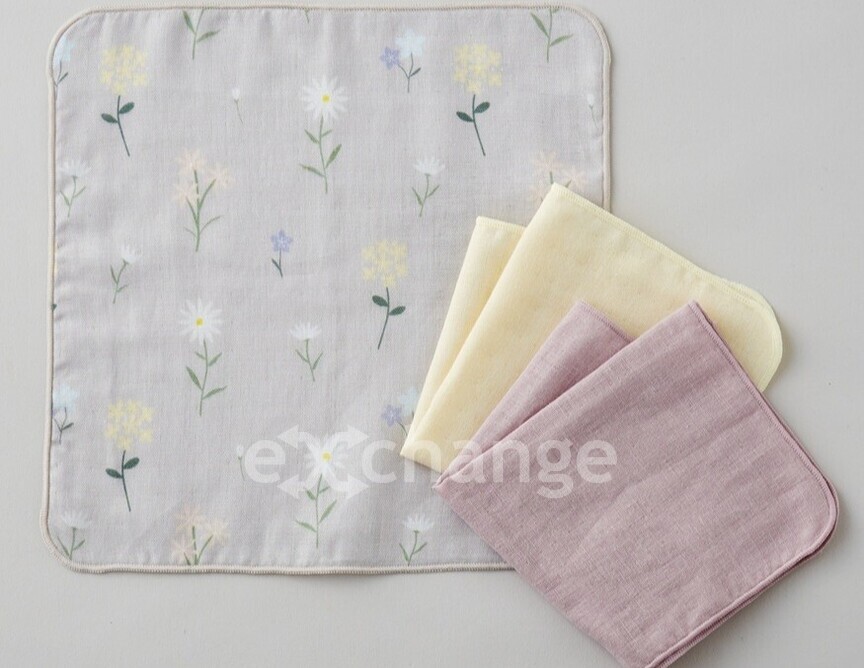 沐浴やお口拭きなどで役立つガーゼ3枚セットは大人が持ちやすいデザインで、ママのハンカチとしてもお使いいただけます。