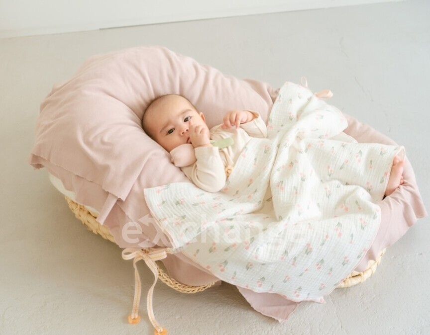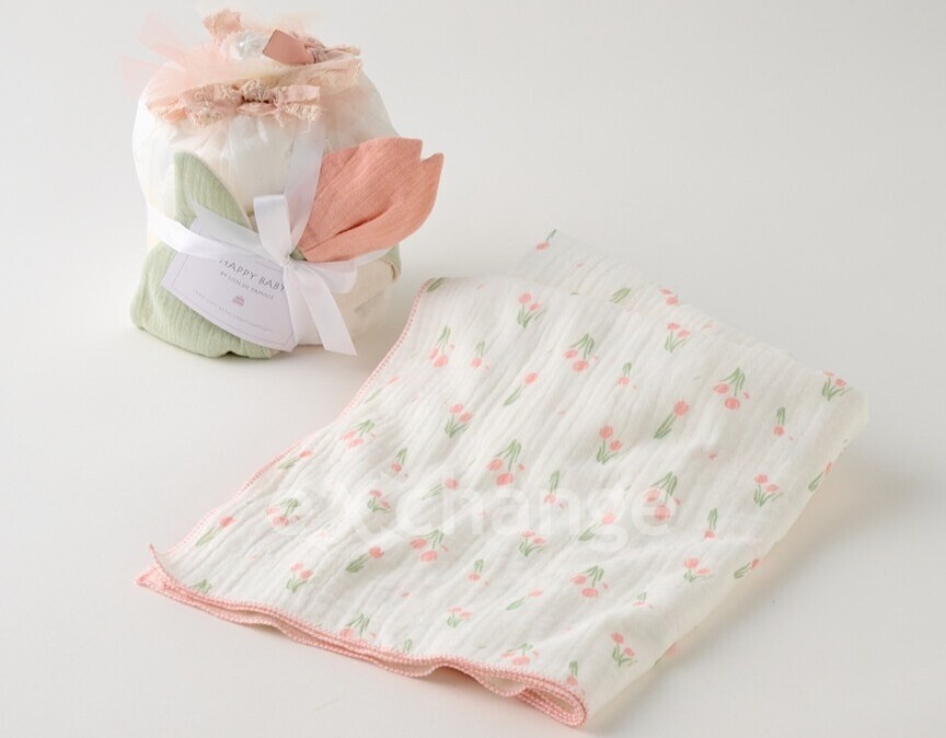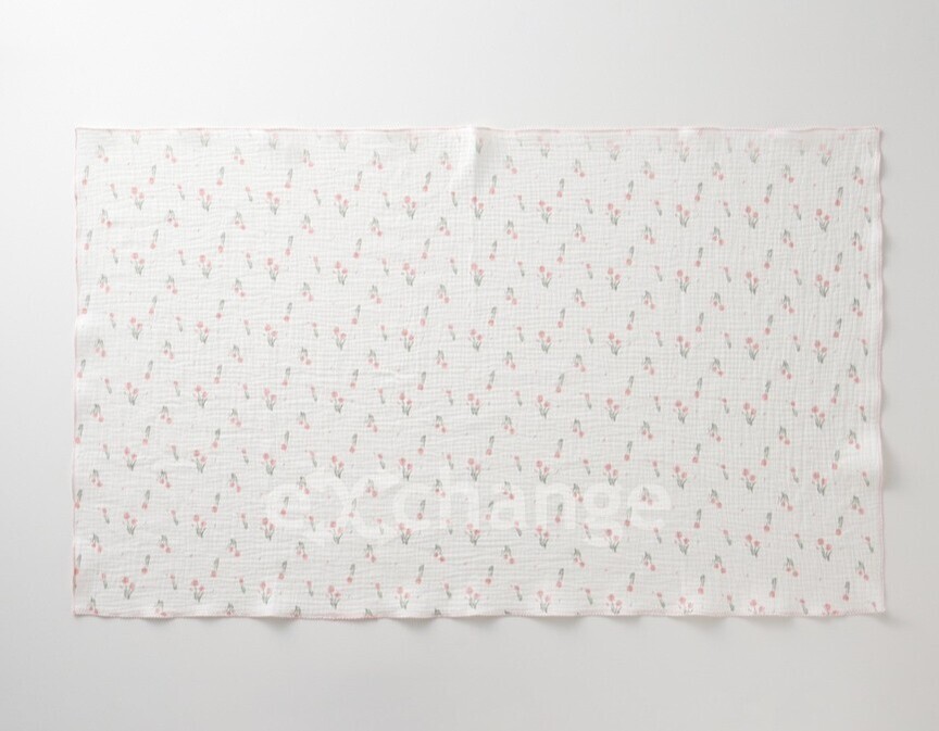 ぽこぽこと立体感のあるやわらかな3重ガーゼを使用したガーゼケットはこどもらしさとおしゃれさを兼ねたチューリップ柄をプリント。