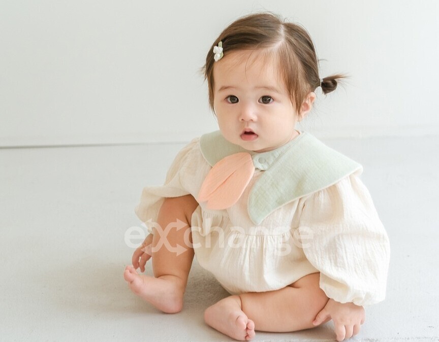 お花が赤ちゃんをぎゅっとハグしているかのようなHug youスタイと、異素材のリボンをたっぷりと施したリボンカチューム(ヘアバンド)がベビーケーキになりました!