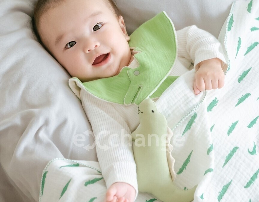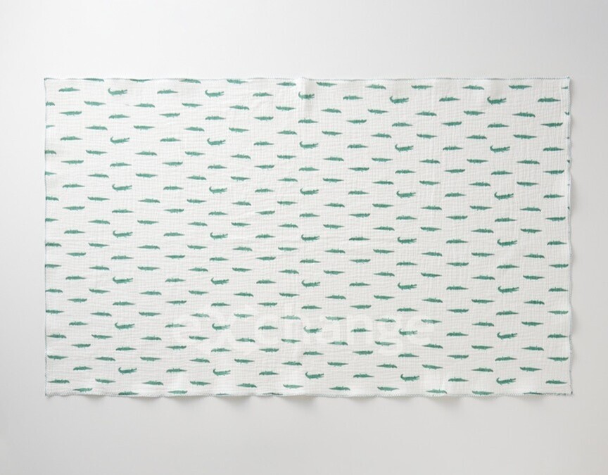 ぽこぽこと立体感のあるやわらかな3重ガーゼを使用したガーゼケットはこどもらしさとおしゃれさを兼ねたわに柄をプリント。