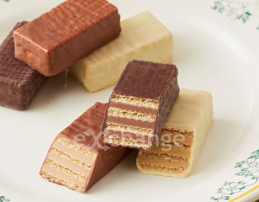きめ細やかなウエハース生地にクリームをサンドし、チョコレートでコーティング。4つのフレーバーをお楽しみいただけます。