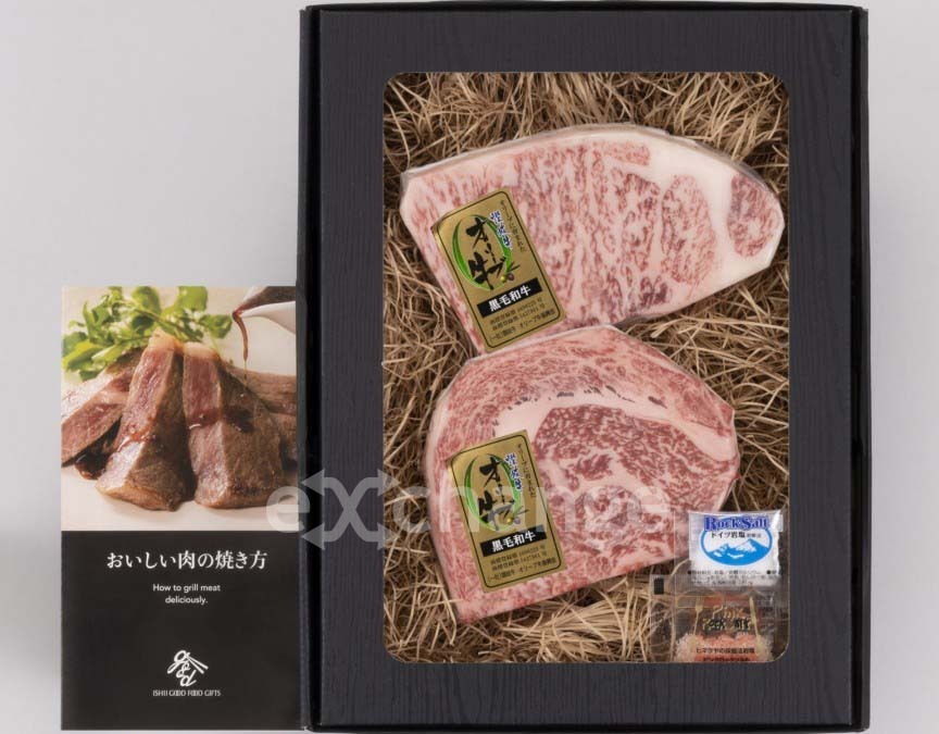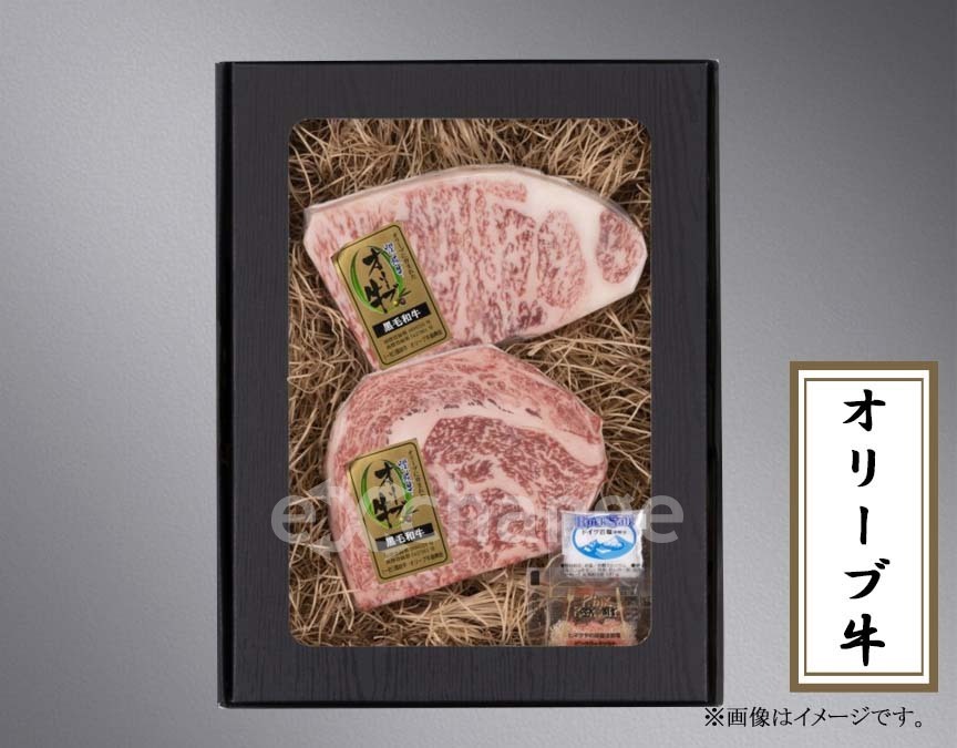 | セット内容 | オリーブ牛サーロイン150g、オリーブ牛リブロース150g、ピンク岩塩1g、岩塩1g |