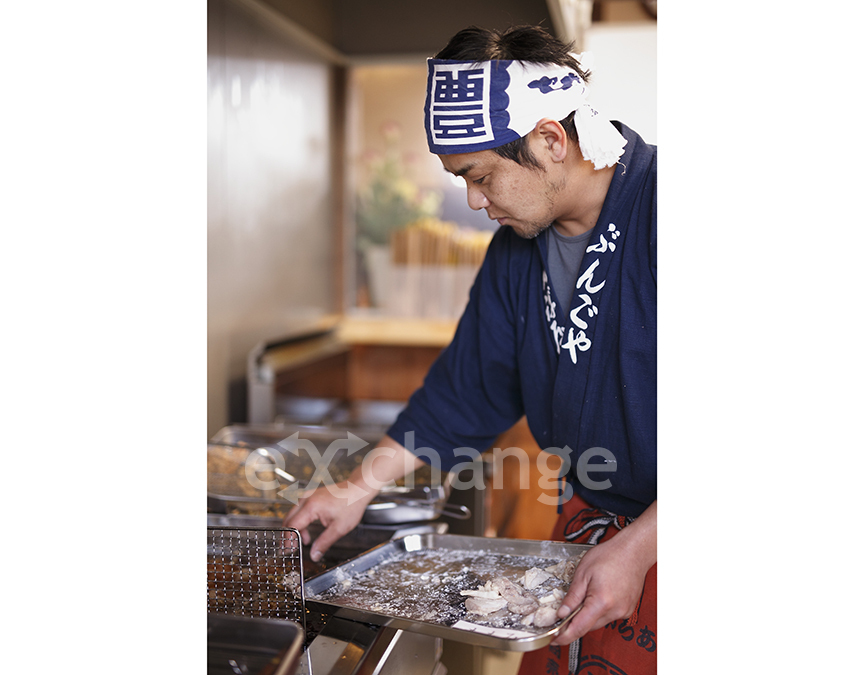 濃口醤油をベースにニンニク、生姜を効かせた旨味たっぷりの大分中津から揚げ。カリッとした衣も特徴です。厳選されたモモ肉を丁寧に整形。食べやすく、揚げても鶏皮が肉の旨さを閉じ込め、外はカリッと中はジューシーです。