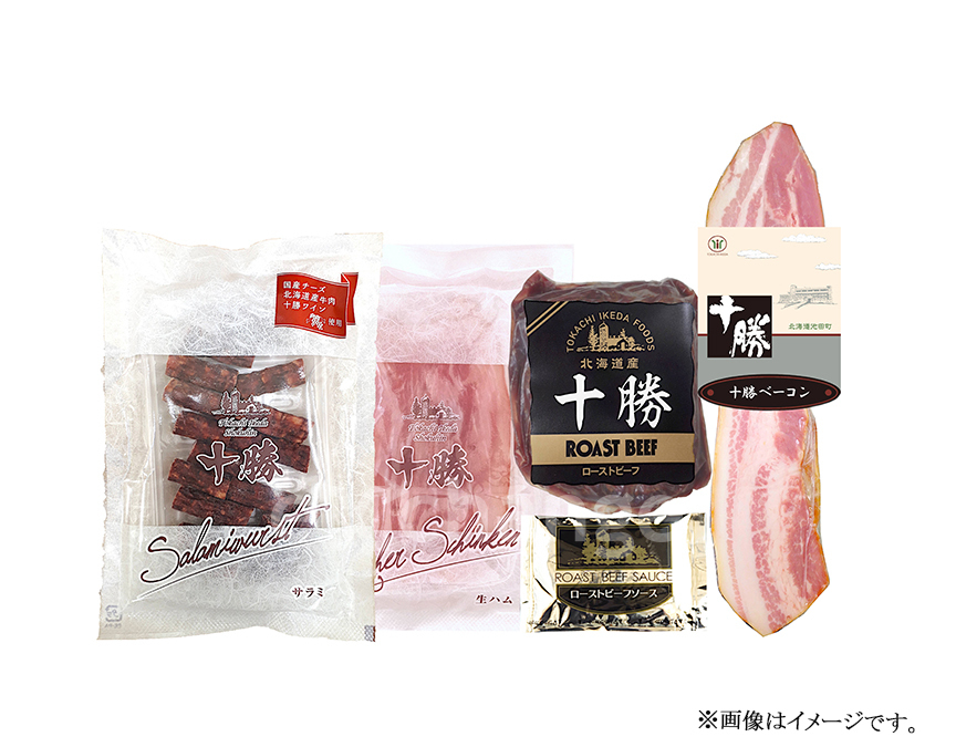| セット内容 | ローストビーフ150g、チーズソフトサラミ60g、ベーコン180g、生ハム40g 各1 ソース30g×2 |