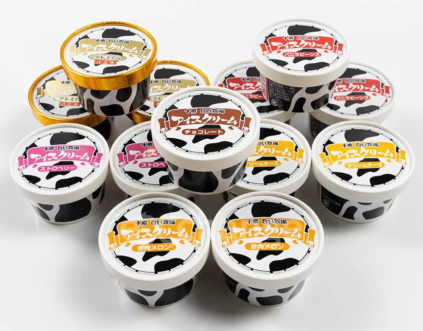 十勝橋本牧場の生乳を使用した牛柄が可愛らしいアイス