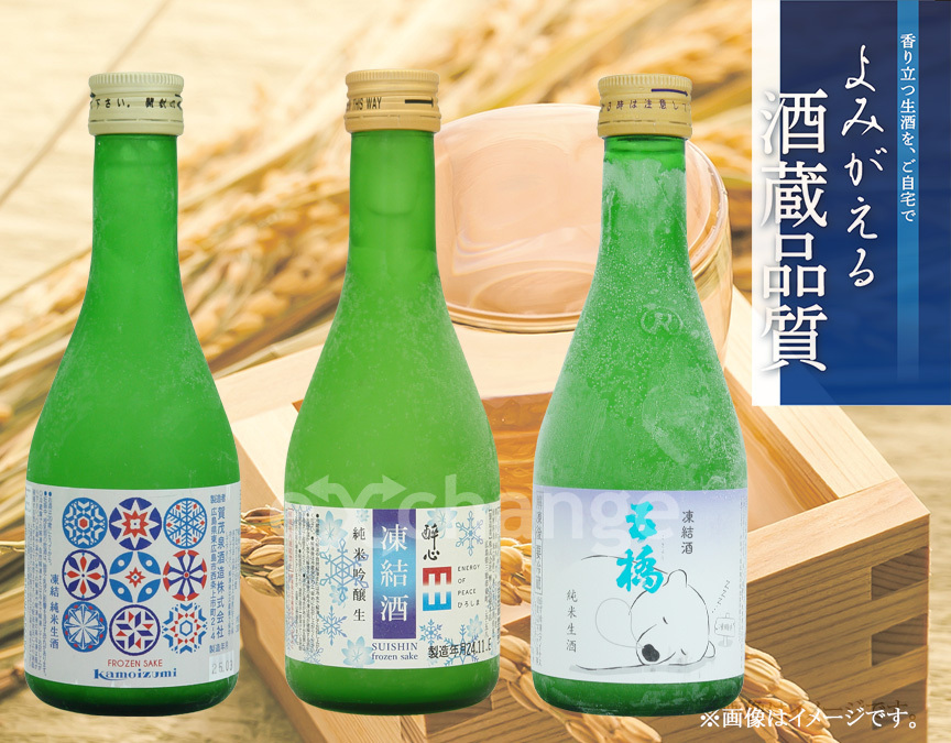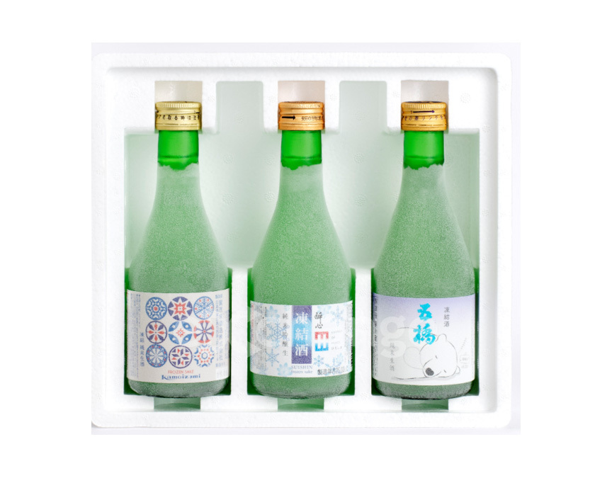 | セット内容 | 賀茂泉 純米生酒凍結酒 300ml×1、醉心 凍結酒 純米吟醸生原酒 300ml×1、五橋 純米 凍結生酒 300ml×1 |